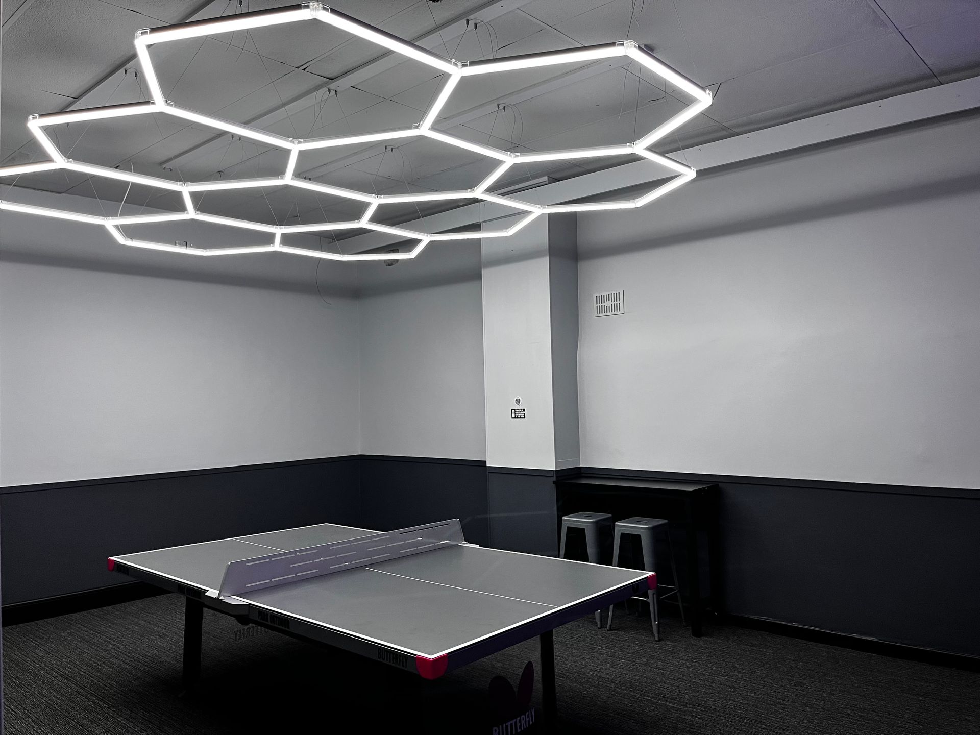 Our table tennis table is enclosed in its very own space, meaning your ping pong ball won't fly off far, and other people won't get in your way!